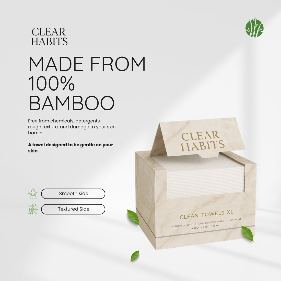 Clear Habits towels are ultra-soft, OEKO-TEX® certified, and designed for delicate facial skin. Unlike standard towels, ours are dermatologist-tested, highly absorbent, quick-drying, and intentionally crafted to support daily skincare rituals—not just drying.